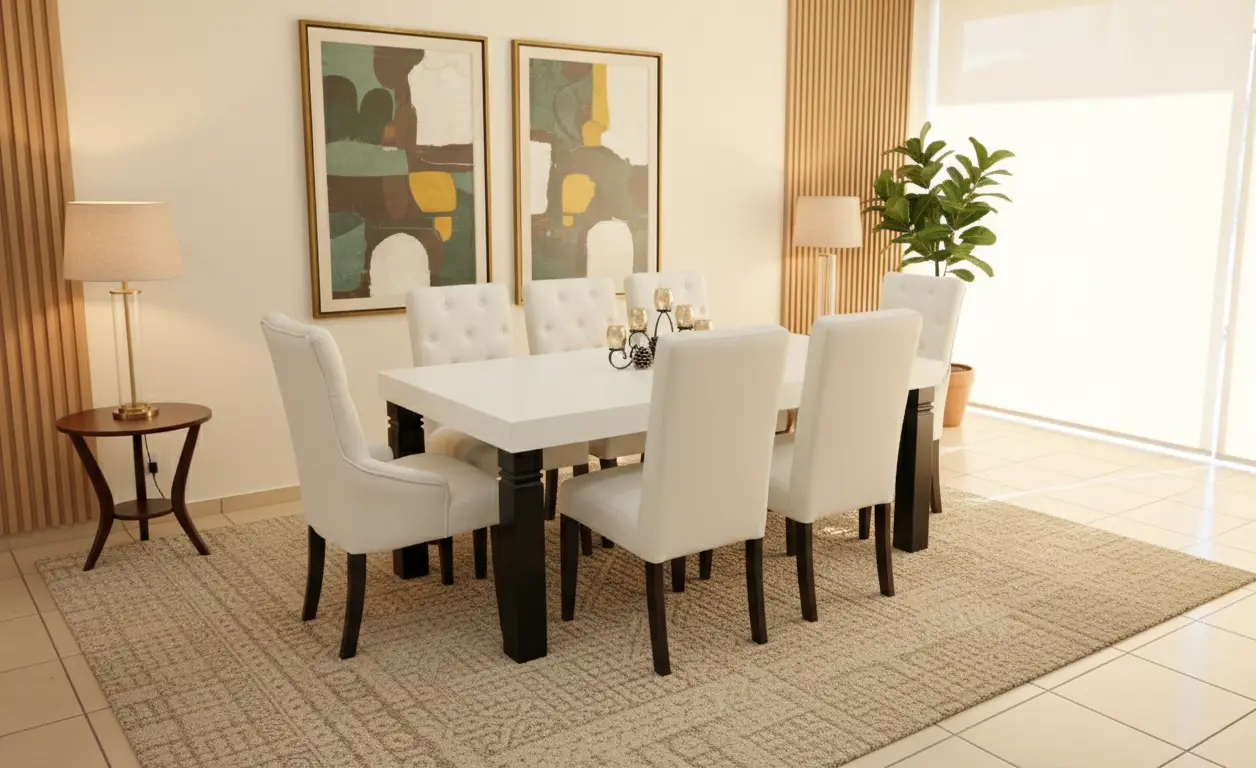El Comedor Esencia Cuarzo Blanco Puro de Home Boutique es una declaración de grandeza y pureza, diseñado para ser el centro de reuniones más amplias y memorables. Este imponente conjunto para 8 personas se distingue por la armoniosa combinación de materiales premium y la versatilidad de sus asientos.