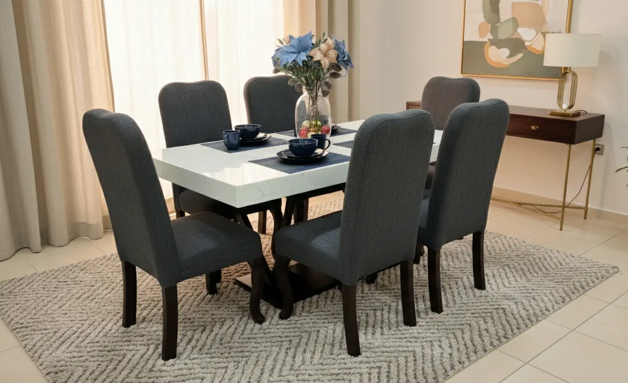 "Esencia" de Home Boutique es la máxima expresión de lujo duradero y diseño atemporal. Este majestuoso comedor para 6 personas fusiona la elegancia minimalista con la fuerza de la naturaleza.