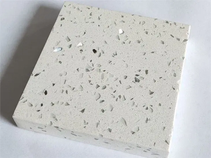 Su diseño se centra en la espectacular cubierta de Cuarzo Blanco Estelar. Este material de vanguardia incorpora micro-partículas que capturan y reflejan la luz, creando un sutil y sofisticado brillo que evoca un cielo estrellado, además de ser no poroso, altamente higiénico y resistente a las manchas.