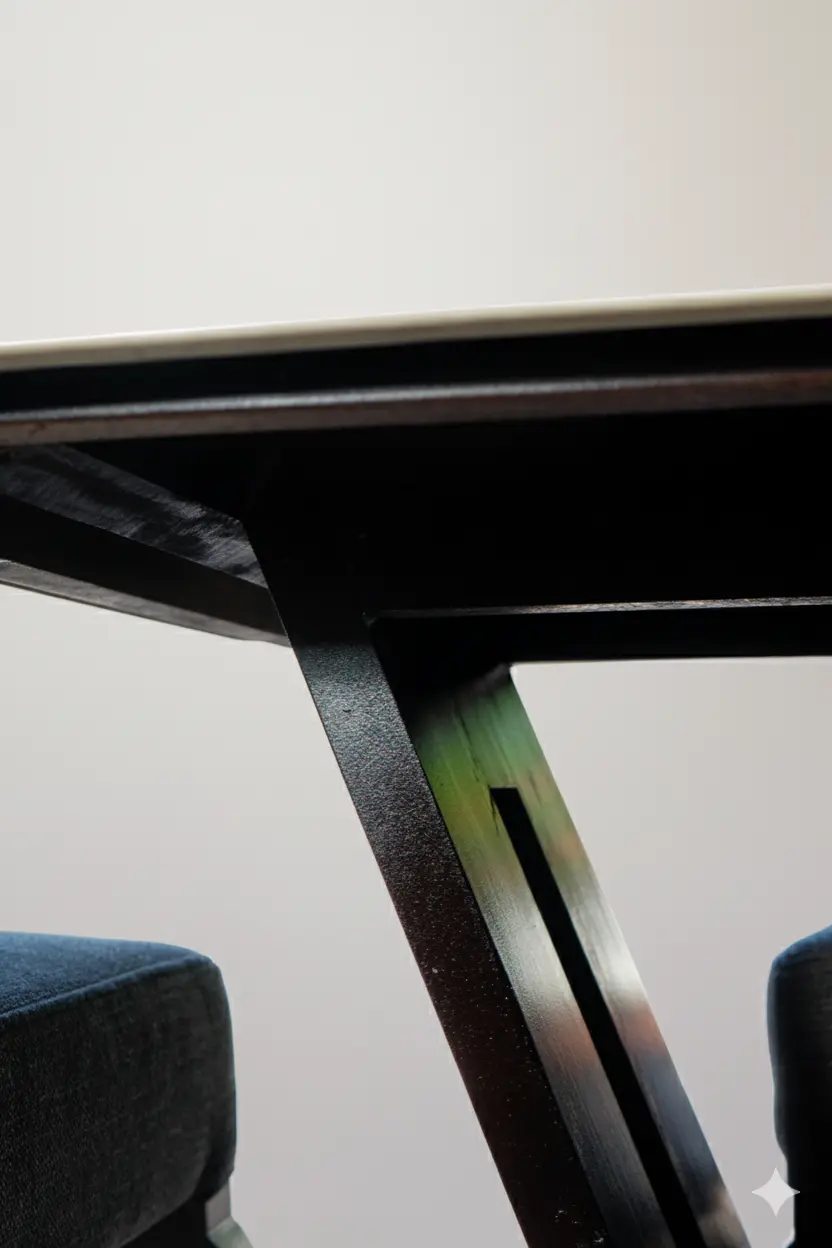 La estructura de la base ha sido esculpida en robusta Madera de Cortez Blanco. Conocida por ser una madera muy dura, pesada y excepcionalmente resistente, el Cortez Blanco garantiza una durabilidad máxima y una estabilidad incomparable. Sus vetas naturales aportan un carácter orgánico y distinguido, elevando el diseño del comedor a una pieza central de arte funcional